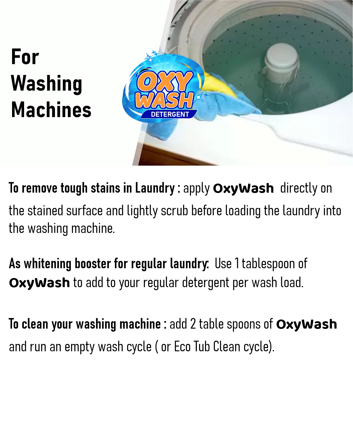 Even regular laundry gets a boost with Oxywash. Add 1 tablespoon of the Stain Cleaner to your regular detergent per wash load for an extra clean feeling.